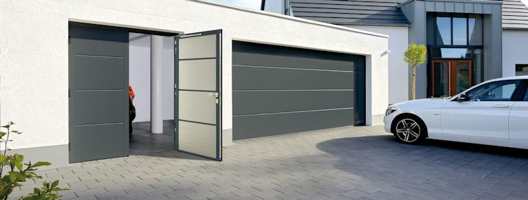 Pentru aproape fiecare model de uşă, la Hörmann este disponibilă şi uşa alăturată potrivită. Astfel, ușa garajului și ușa pietonală alăturată formează o unitate armonioasă.
