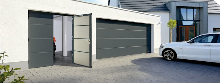 Ușile alăturate sunt întotdeauna foarte practice atunci când doriți să scoateți rapid obiecte din garaj, fără a dori să deschideți ușa acestuia. Ori, din cauza spațiului limitat din fața garajului, a doua mașină a familiei parchează direct în fața ușii acestuia iar accesul este astfel blocat. Pentru aproape fiecare model și tip de uşă de garaj este disponibilă, de la Hörmann, şi uşa alăturată potrivită. Astfel, ușa garajului și ușa alăturată formează o unitate armonioasă.
