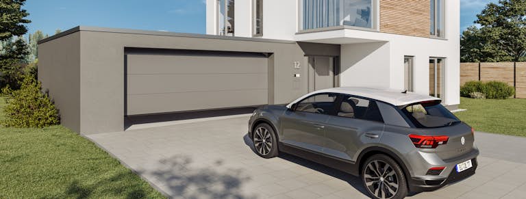 Ușile secționale elegante, automatizate, se deschid vertical. Astfel se garantează un plus de spațiu în interiorul și în fața garajului - întreaga zonă de intrare rămânând liberă. Uşile secţionale se potrivesc întotdeauna la montaj - indiferent dacă deschiderea garajului are formă dreptunghiulară sau înclinată, are boltă segmentată sau în arc de cerc. De aceea ele sunt ideale pentru modernizare.
